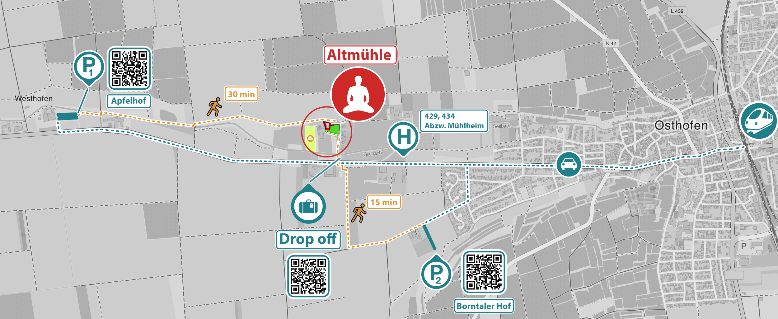 Lage- und Parkplatzplan Altmuehle Deutschlandkurs